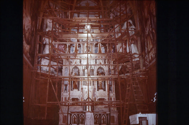 | Scafolding Eva and Americo Makk climbed daily in a church in Jau, Brazil. |